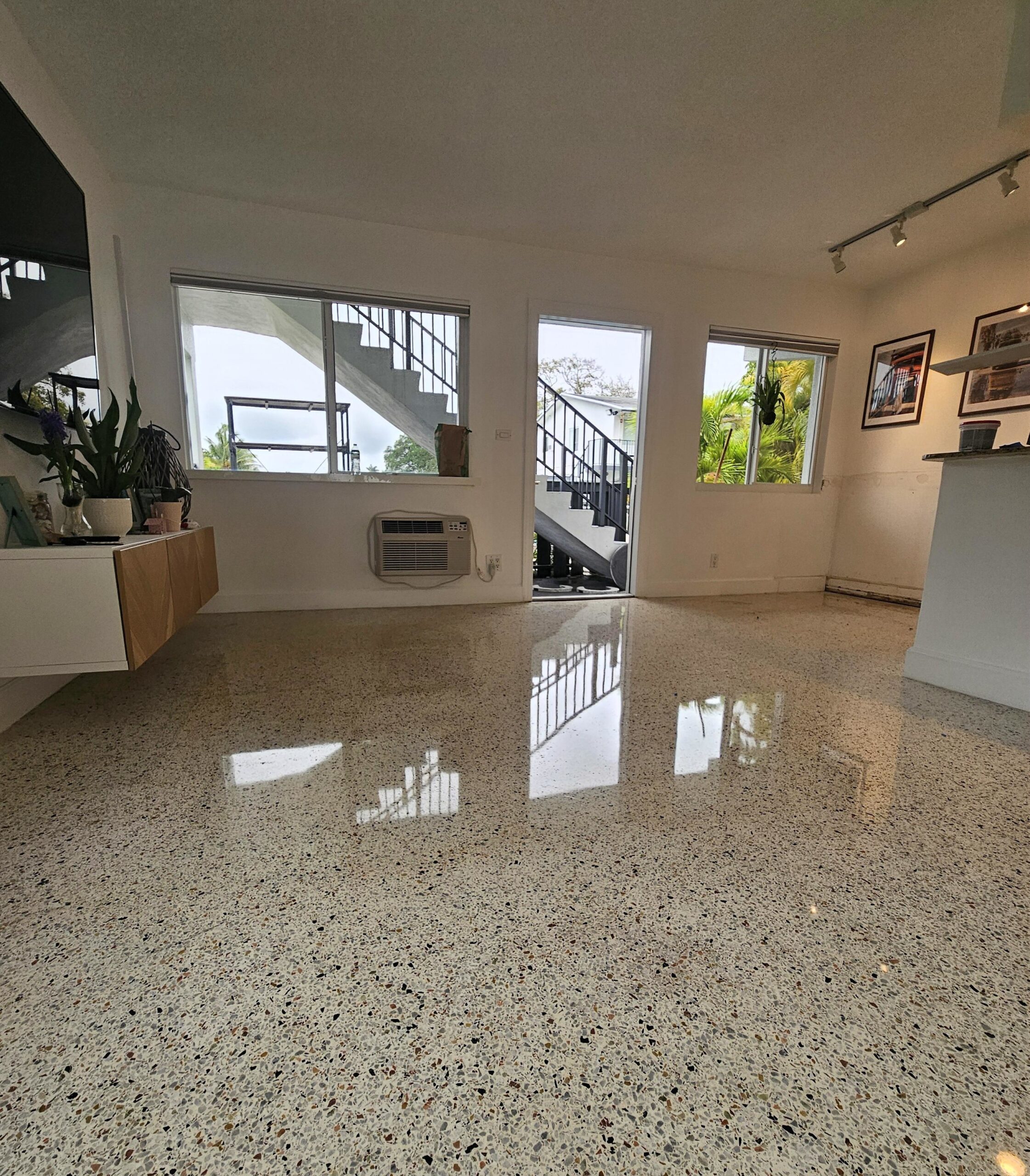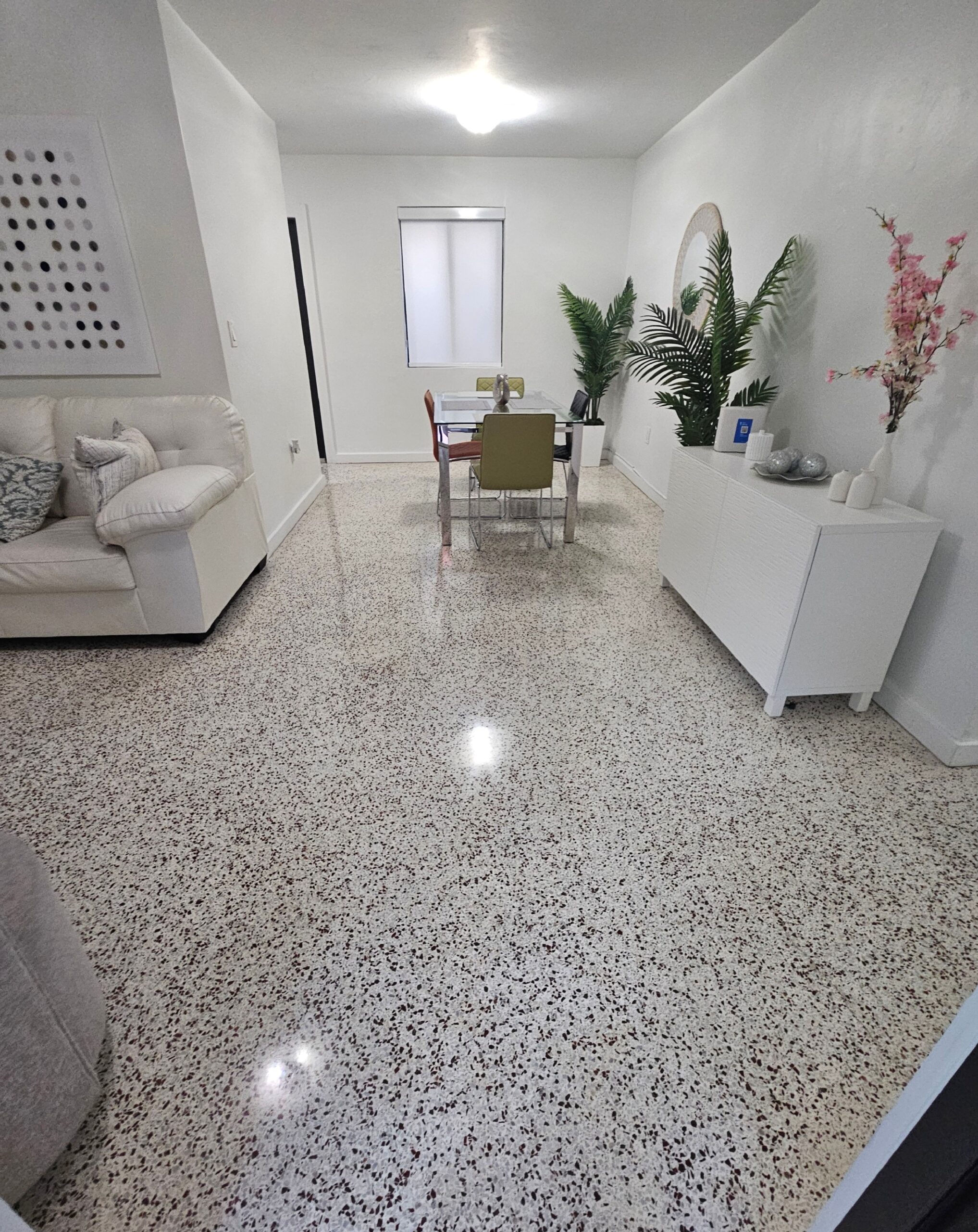Our meticulous process eliminates etching, scratches, and discoloration, restoring the intrinsic shine and vibrancy of Terrazzo.
